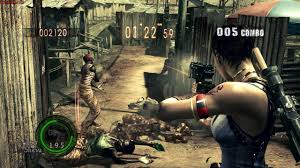 he player can control Chris Redfield or Sheva Alomar, from an over-the-shoulder perspective.The game's environment plays a significant role. The Mercenaries minigame is present in Resident Evil 5. At launch, the multiplayer mode in the minigame was offline only, but a launch day patch gave the game online multiplayer modes as well.